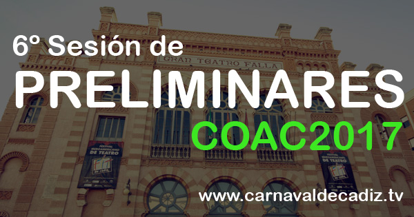 El día 27/01/2017 comienza la 6º sesión de Preliminares en este COAC 2017. A continuación listamos las agrupaciones cabeza de serie, es decir, agrupaciones que accedieron a la final o semifinal el año anterior.