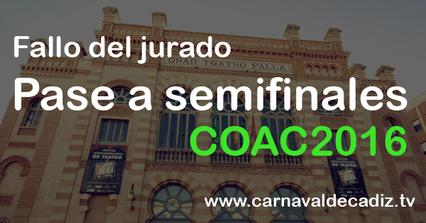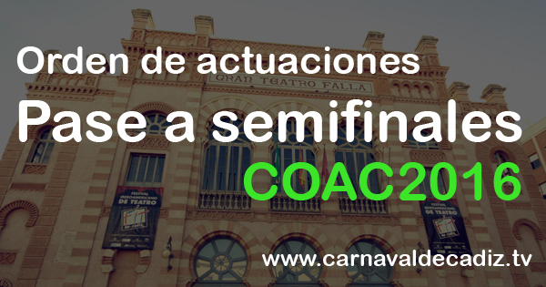 El día 01/02/2016 comienza la 1º sesión de Semifinales en este COAC 2016. A continuación listamos las agrupaciones cabeza de serie, es decir, agrupaciones que accedieron a la final o semifinal el año anterior.