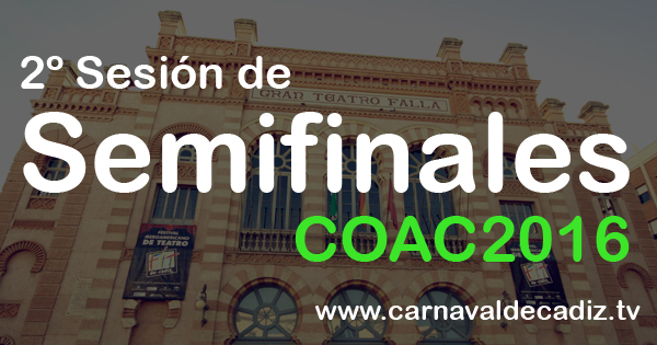 El día 02/02/2016 comienza la 2º sesión de Semifinales en este COAC 2016. A continuación listamos las agrupaciones cabeza de serie, es decir, agrupaciones que accedieron a la final o semifinal el año anterior.